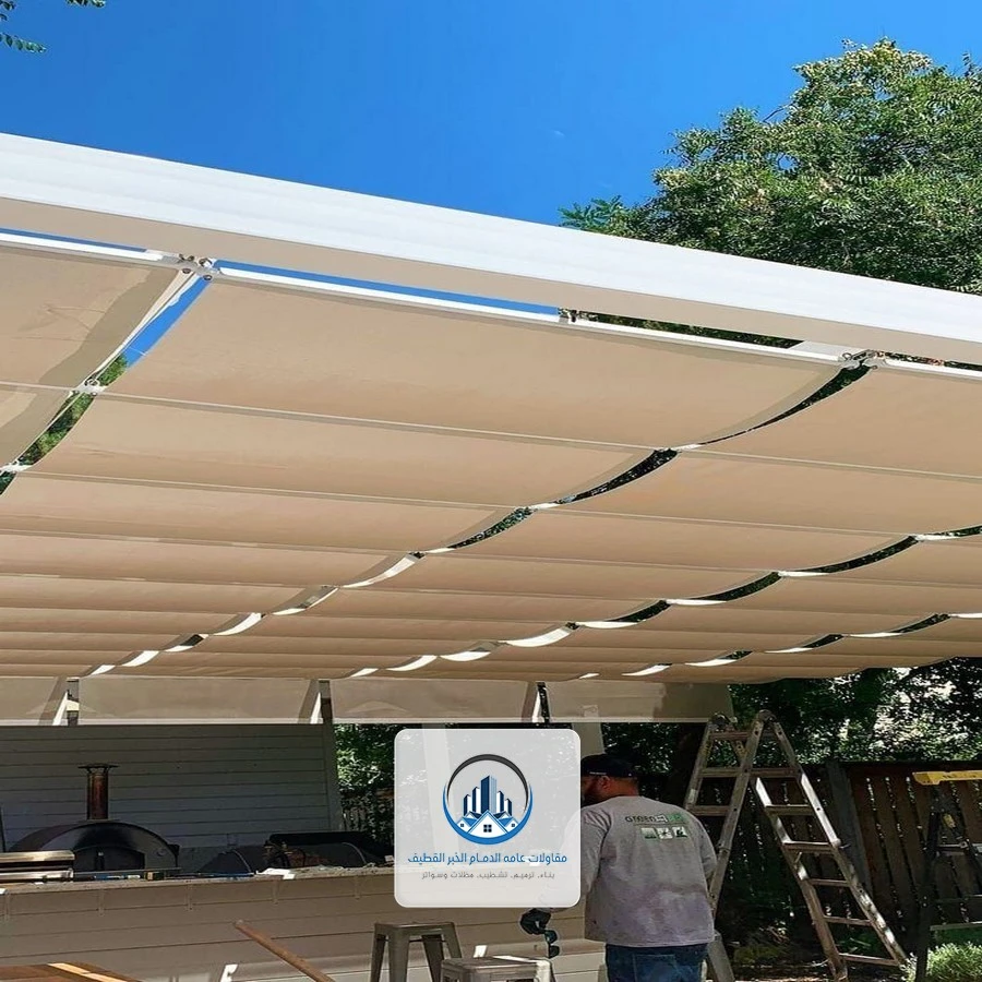 تصبح الحياة أجمل تحت مظلات مصممة بإتقان، سواء كانت في مداخل البيوت، حيث تستقبل بها ضيوفك، أو فيحوش المنزل تظلل سياراتك. إن عمل مظلات الخبر يضيف قيمة حقيقية لمنزلك. لأنها تحمي من أشعة الشمس القوية، وتخفف الحرارة، وتوفّر ظل مريح. كما أنها تحافظ على الأبواب والنوافذ من التلف المبكر.
